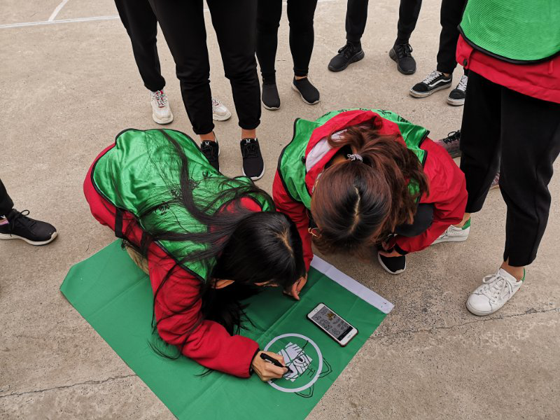 教練首先介紹了拓展訓練的流程以及活動(dòng)規則,緊接著(zhù)在教練的指導下,通過(guò)隊長(cháng)選出組員,將全體人員分成兩大組四小組,經(jīng)過(guò)小組一番討論,一個(gè)個(gè)響亮的口號,一首首嘹亮的隊歌和富有特點(diǎn)的團隊loge逐一精彩亮相,拓展訓練就此拉開(kāi)了序幕。