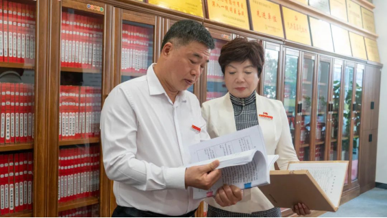 他們依次走過(guò)初心廳、探索廳、發(fā)展廳、抗疫廳等地方,在“四五”工作模式廳中,薛榮向幸輝介紹了圓方的發(fā)展歷程,以“圍繞發(fā)展抓黨建,抓好黨建促發(fā)展”為立足點(diǎn),把思想集中到想干事上,把力量集中到干實(shí)事上。