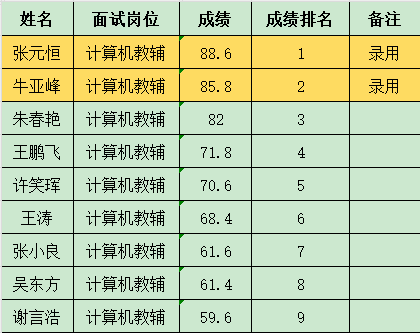 計算機教輔錄用2名